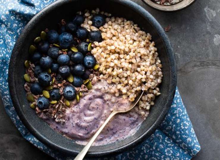 Гречка насыщает медленными углеводами, клетчаткой и магнием, йогурт поддерживает микрофлору кишечника, а ягоды дают антиоксиданты. Орехи обеспечивают белок и омега−3, что делает боул питательным и сбалансированным.