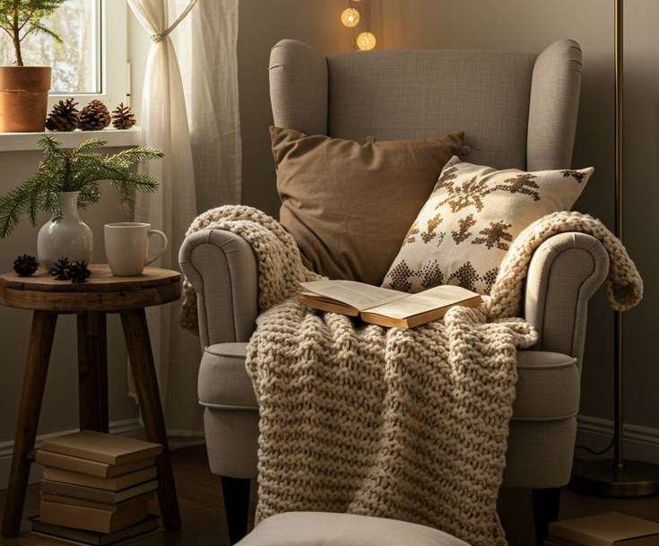 Что делаем: используем ширмы, стеллажи, ковры или даже цвет, чтобы визуально отделить рабочую зону от места отдыха. Создаем маленький «уголок силы»: уютное кресло у окна с торшером и пледом, где можно просто посидеть в тишине с чашкой чая.