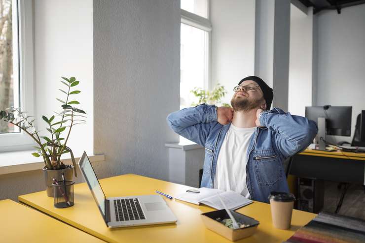 - Правильная осанка — помните о правильной осанке во время работы. Держите спину ровно, плечи расслабленными, а монитор на уровне глаз.
